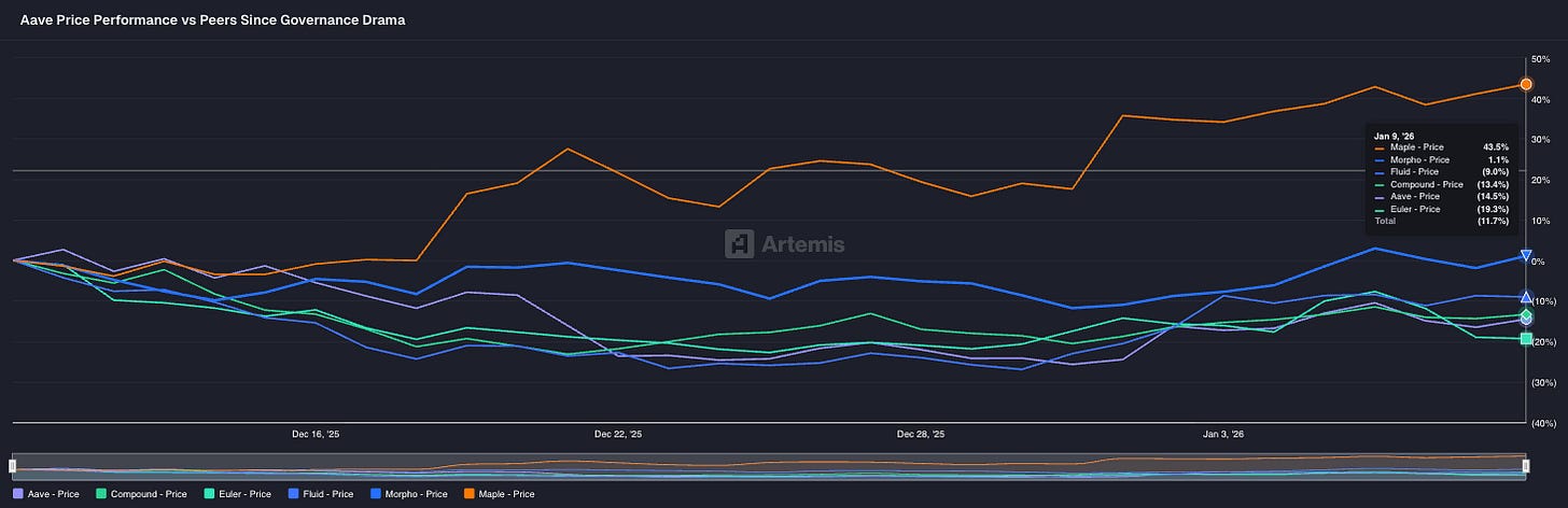 We are optimistic about tokens, and believe that Aave is one of the most important protocols/tokens in the space. It is vital that the DAO and the token are able to capture value from the protocol (they do via interest revenue and other mechanisms) and that service providers like Aave Labs are remunerated for their contributions so the product/ecosystem can continue to grow. We’re closely watching this situation as the community awaits a structured proposal from Stani and Aave Labs on next steps.