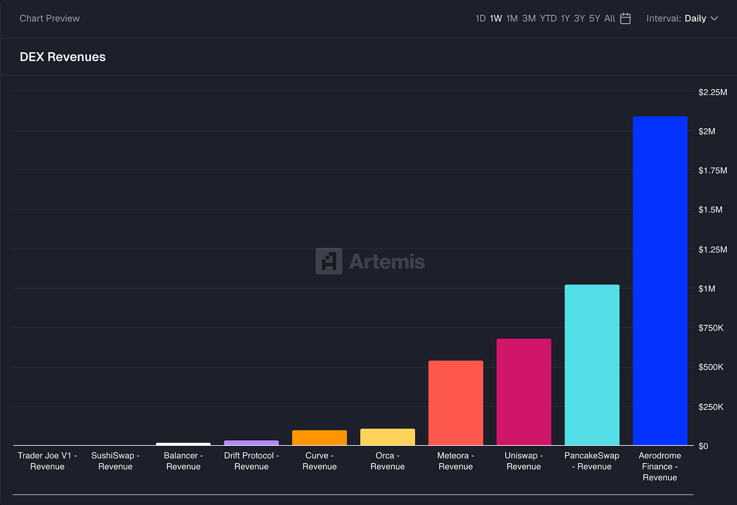 Uniswap activated its fee switch across select products, generating ~25m run-rate revenue for the token, ranking Uniswap at #3 in trailing 7D DEX token revenue.
