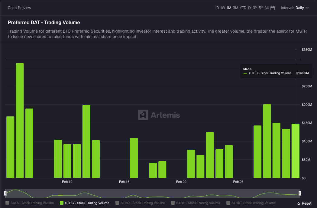 Strategy’s STRC saw explosive volume as shares traded above $100 par value.