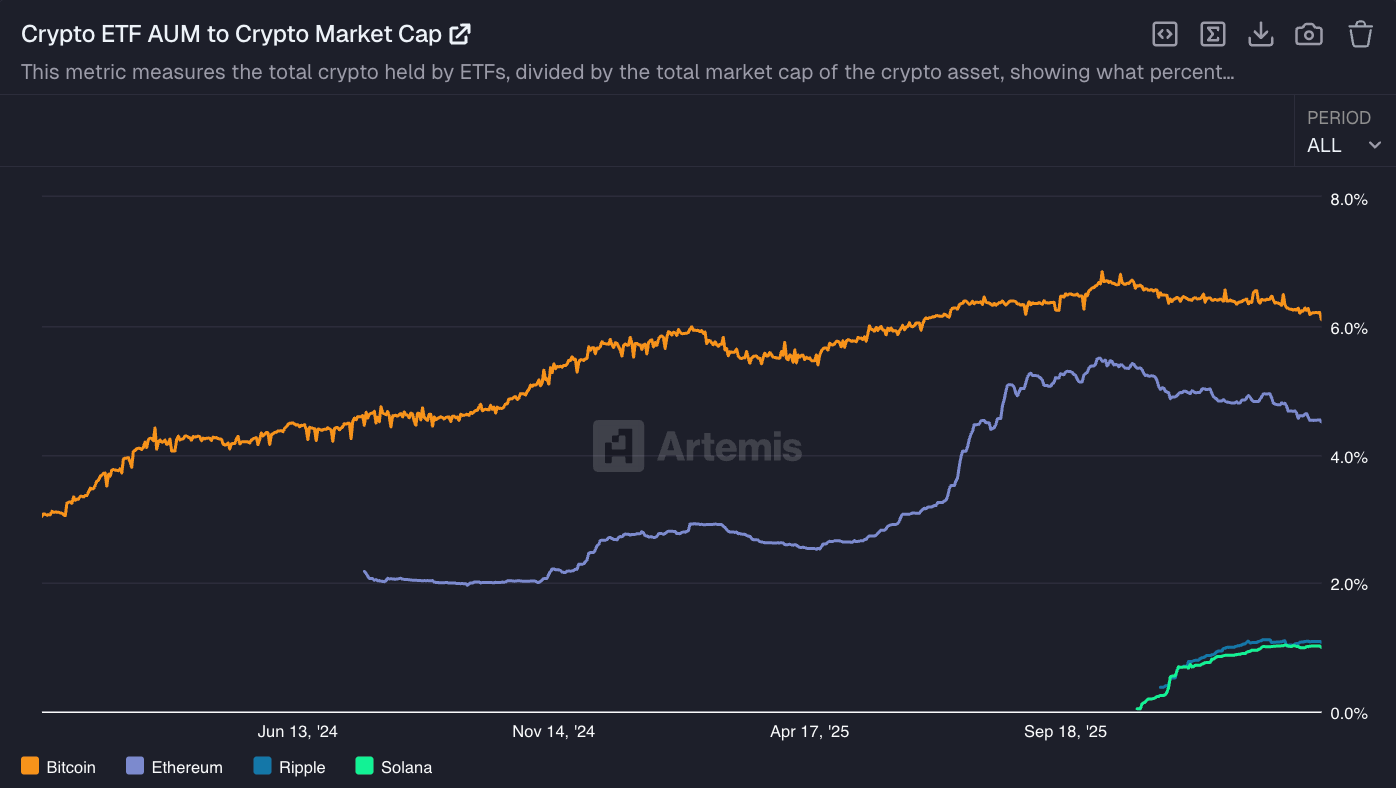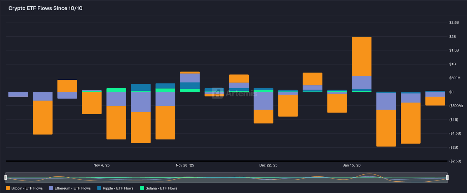 First, we announce that Artemis has expanded its coverage to include ETF-level data — flows, AUM, and more — across four major crypto assets: Bitcoin, Ethereum, Solana, and XRP. This comes at a critical juncture, as institutional digital asset holders like ETFs and digital asset treasuries under closeThe crypto ETF market just had its most eventful few months since the original Bitcoin ETF approvals, and the picture looks very different depending on which asset you’re watching.