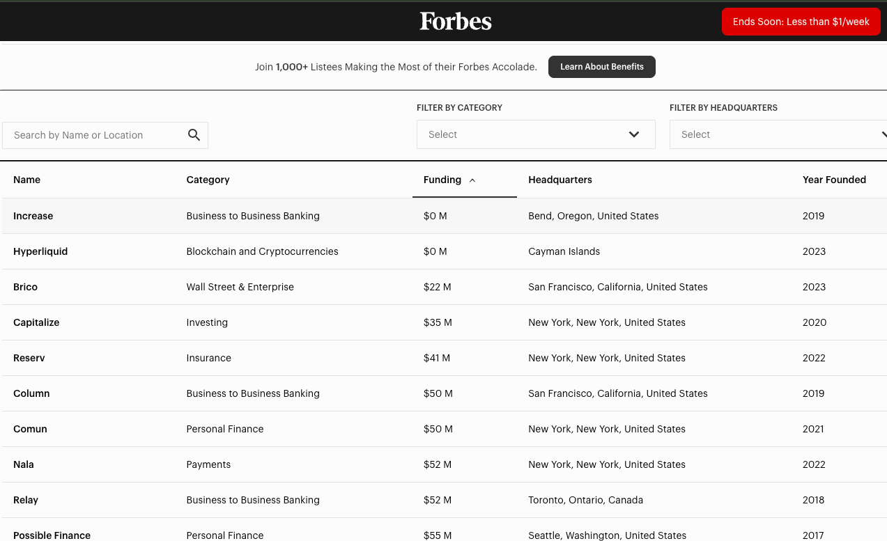 Hyperliquid Hits the Forbes FinTech 50