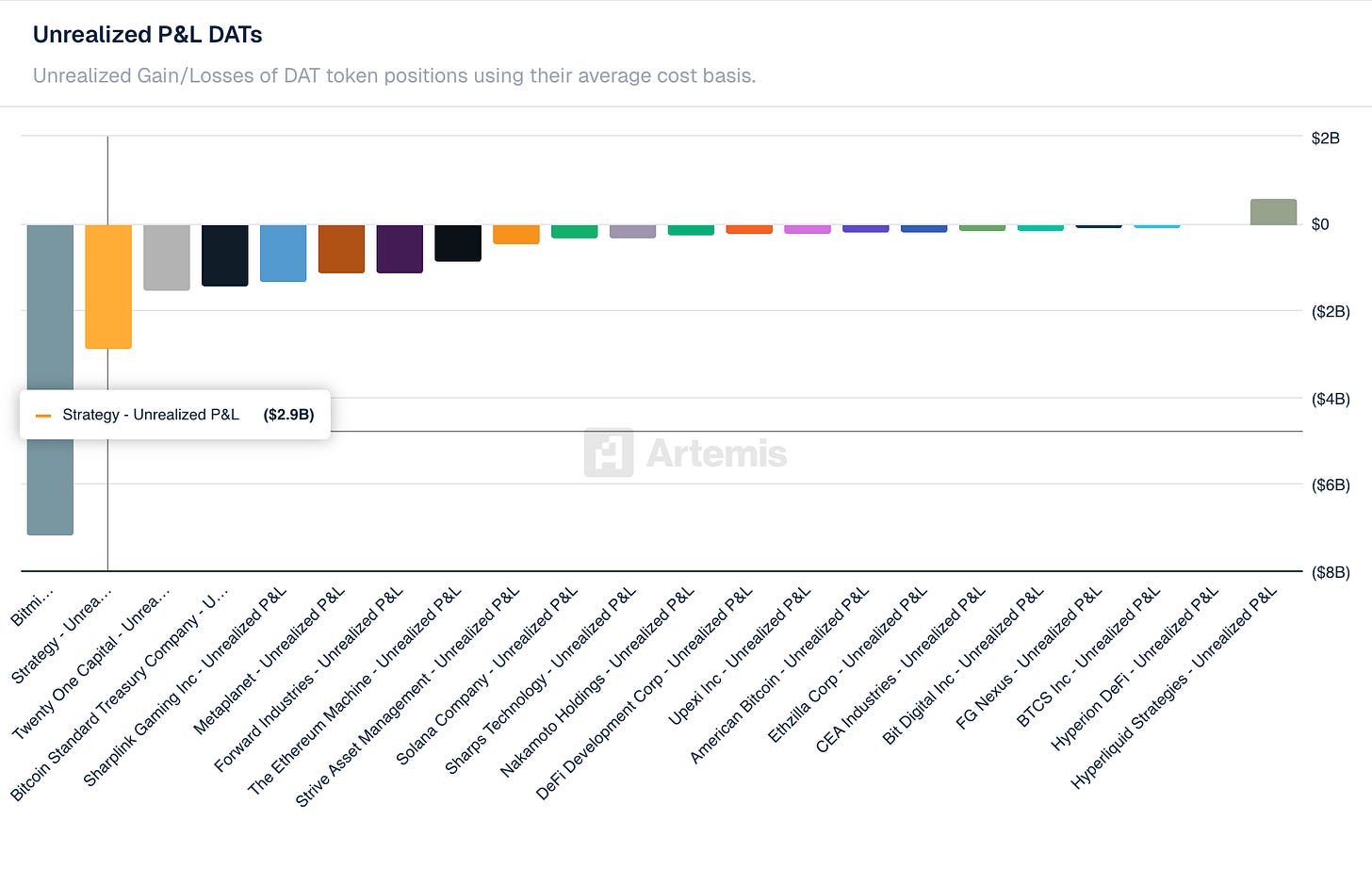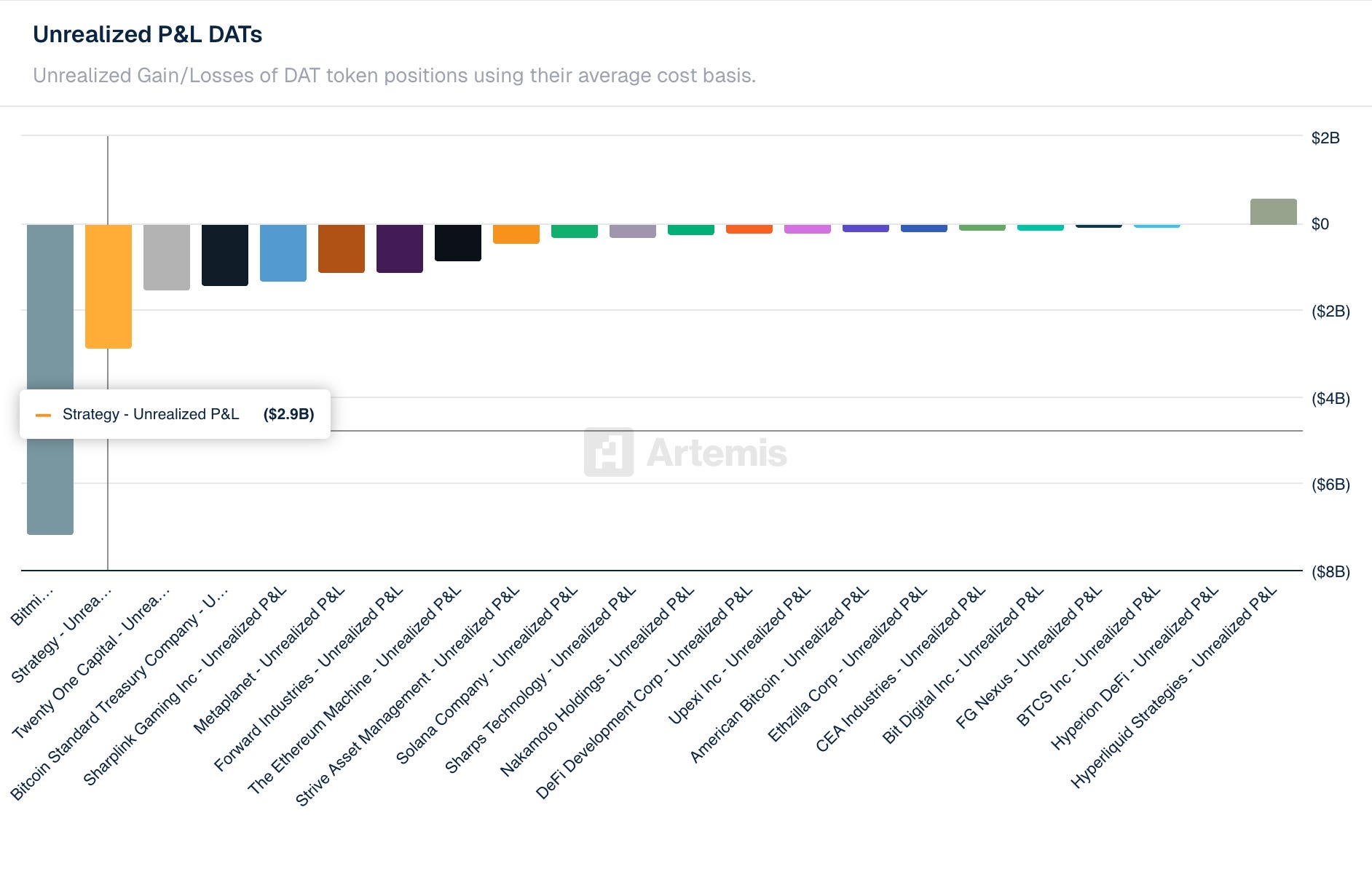 Not yet, at current prices. Strategy is sitting on approximately -$2.9B in unrealized losses against its blended cost basis. Most of the DAT cohort accumulated heavily during BTC’s $80K–$100K+ run in late 2025, meaning the majority are currently offside. The ceasefire rally this week provided partial relief, but a sustained break above $80K is what most of these balance sheets need to return to breakeven.