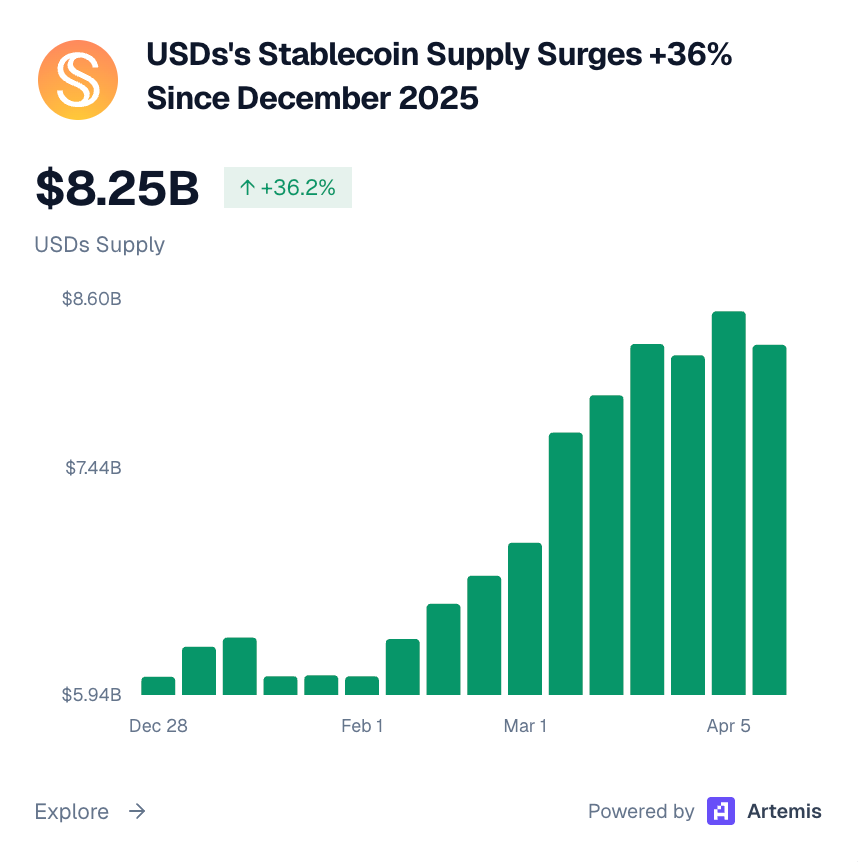 USDs Stablecoin Supply Surges +36% since December 2025