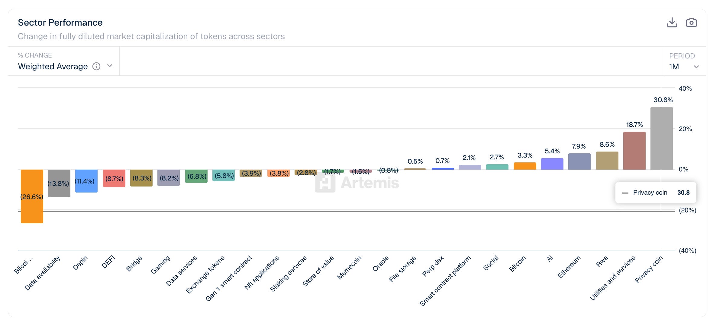 Privacy Coins lead all sectors in performance