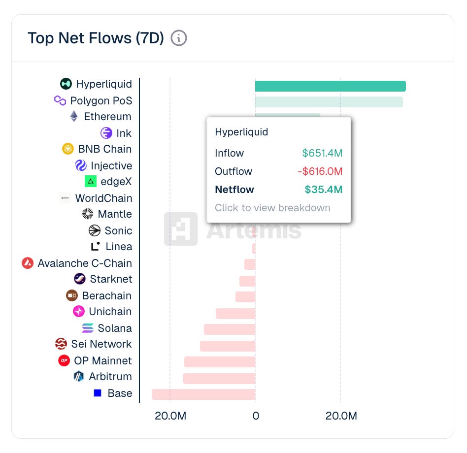 Hyperliquid leads 7D Top Net Flows Chart