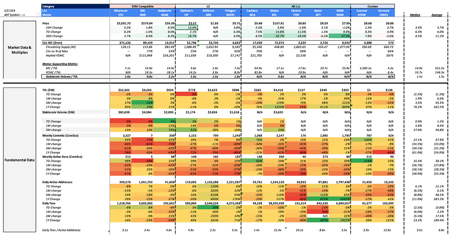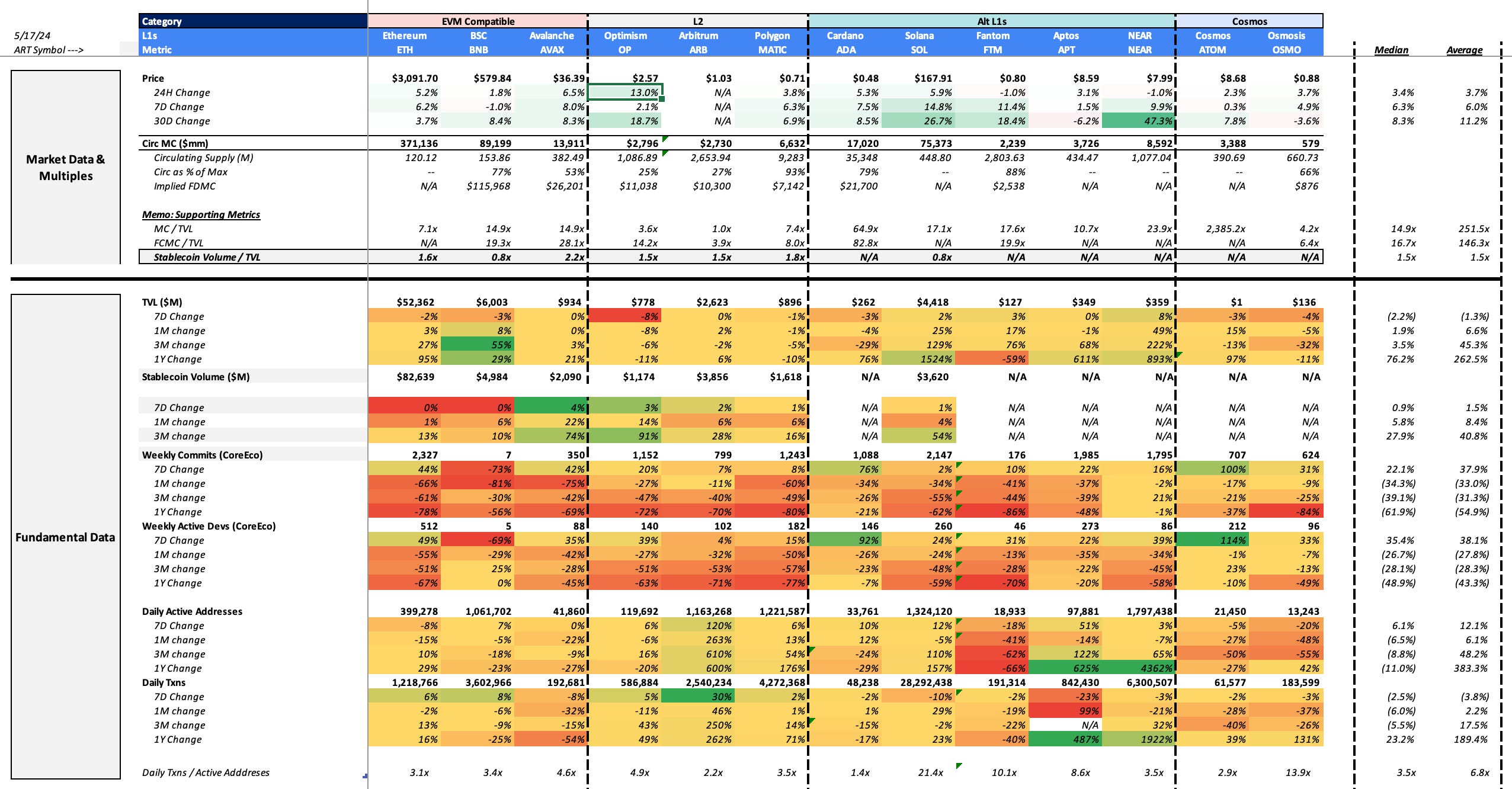 Check out other analyses such as the Artemis Relative Valuation L1 / L2 Analysis in Google Sheets here! Track valuation multiples across key operating metrics for top blockchain including Ethereum, Arbitrum, Optimism and Solana.