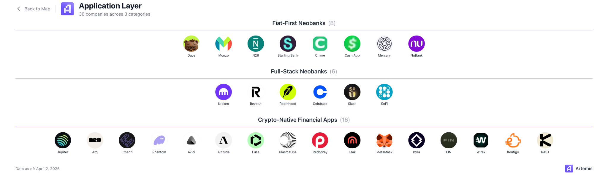 Explore the full Artemis Neobank Market Map to see every player across all six layers.