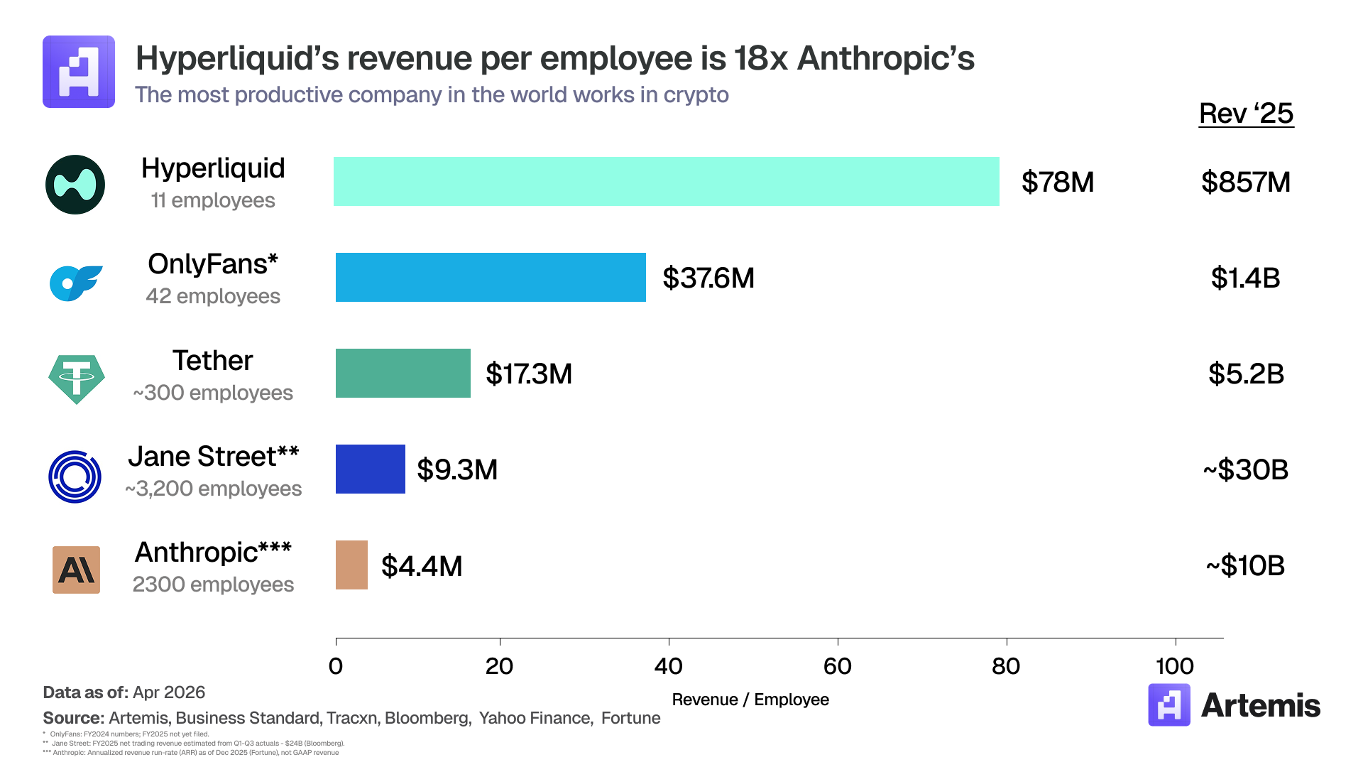 The underlying is the asset that makes this structure unusual. HYPE is an equity-like claim on Hyperliquid, a perps exchange that generated $857M in 2025A fees with 11 employees (~$78M rev/employee, the highest of any company in the world).