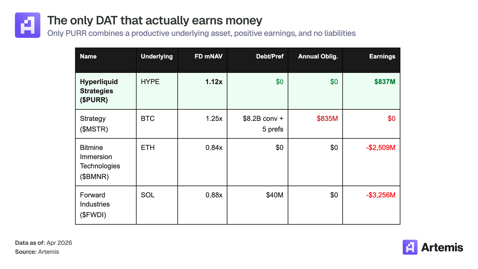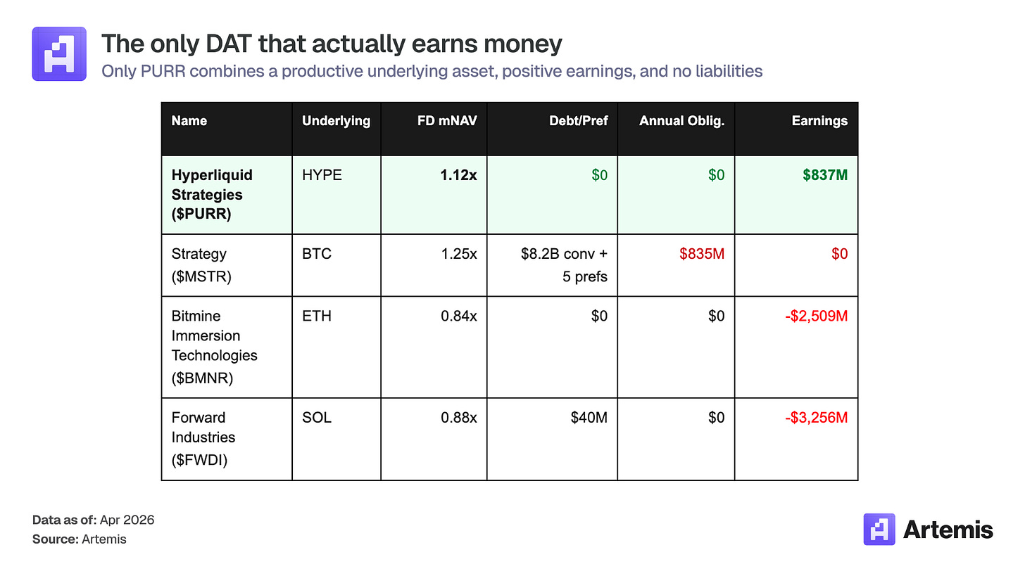 PURR is the only DAT that combines a productive underlying, positive earnings, and zero liabilities.