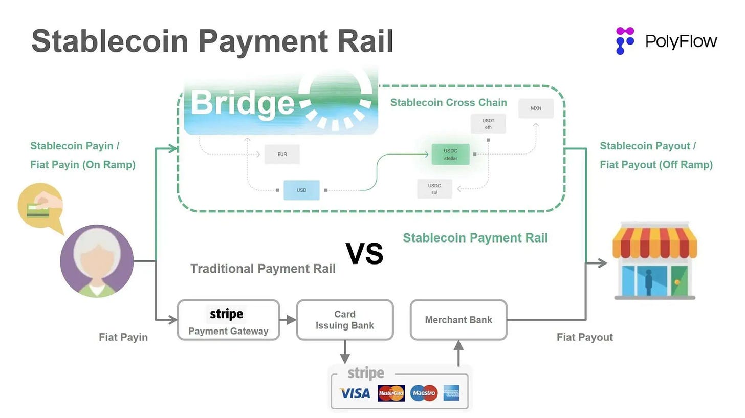 The acquisition of Bridge Network for $1.1 billion earlier this year reinforces this strategy. Bridge specializes in stablecoin-native payment infrastructure, including on- and off- ramps, compliance tooling, and global settlement rails. Stripe did not buy Bridge to launch a token – it bought Bridge to internalize the plumbing. This move gives Stripe more control over its stablecoin strategy and improves the integration for existing merchant workflows.