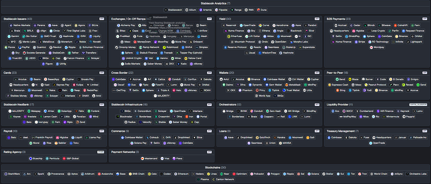 The Artemis Stablecoins Map shows just how chaotic the current landscape is. Merchants simply aren’t going to deal with dozens of on-off ramps, wallets, and infrastructure providers to convert their earnings into fiat.