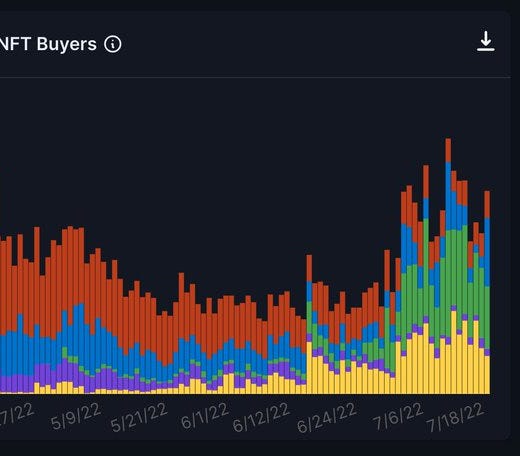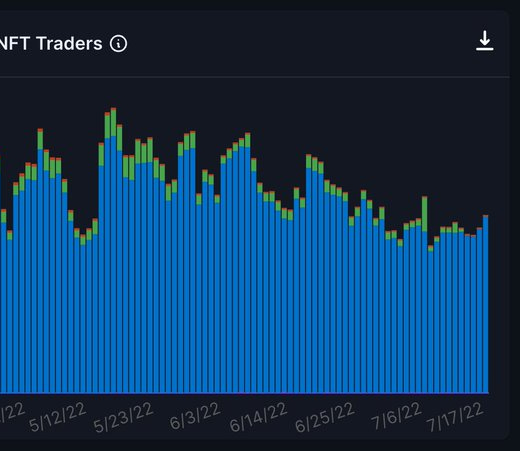 …And NFT Volume/Traders! NFT volumes starting to heat up on AVAX because of https://joepegs.com/. Interesting to watch new daily NFT buyers grow in July ‘22 because of Joepegs.