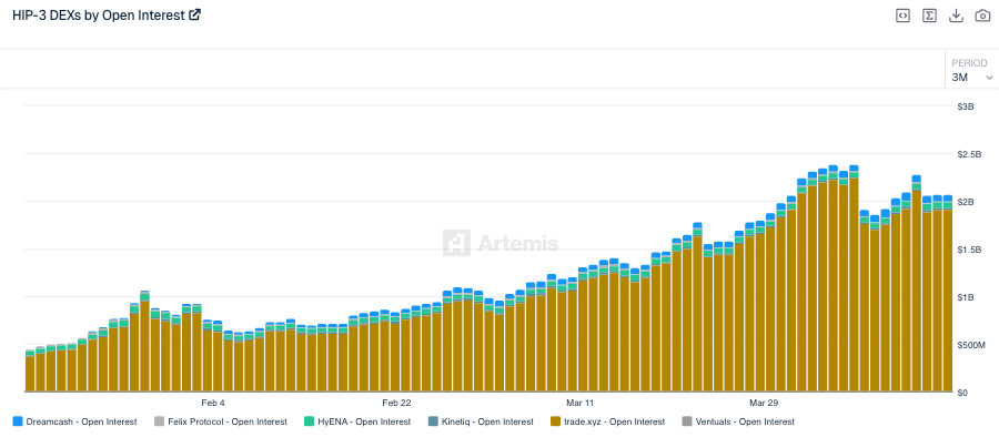Chart 1: HIP-3 Open Interest has stalled but remains above $2 billion