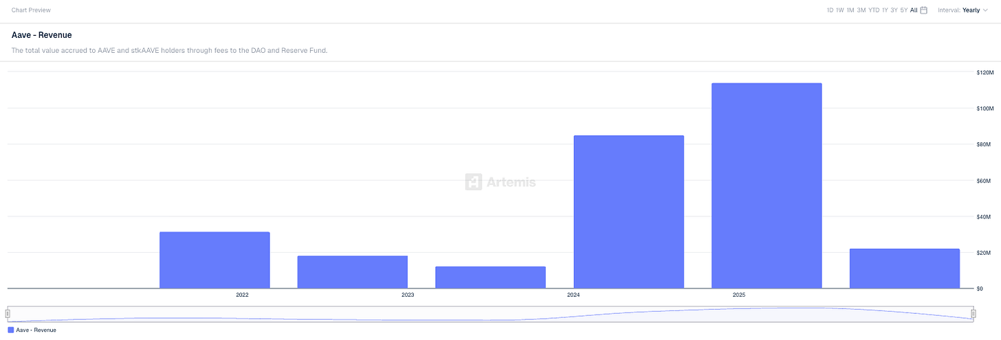 On April 12, the “Aave Will Win“ (AWW) proposal passed with overwhelming support: 75% of voters voted in favor (aave.com). The proposal does three things: (i) redirects 100% of revenue from every Aave-branded product to the DAO; (ii) pays Aave Labs a one-time package of $25M in stablecoins plus 5,000 AAVE; and (iii) consolidates brand and economic rights under the token itself. An on-chain AIP ratification still has to clear. That’s the real catalyst.